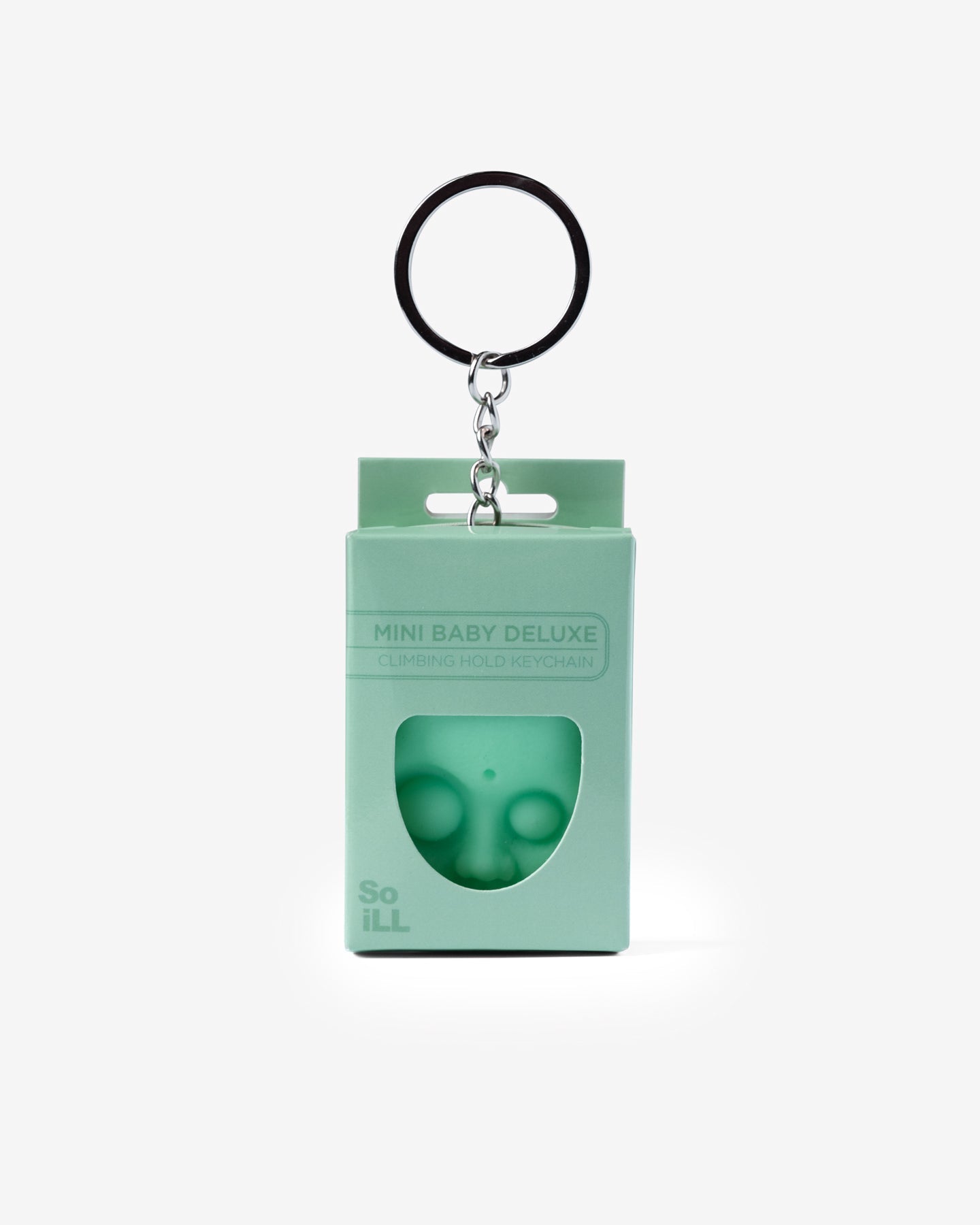 Designed to be the keeper of your keys, the Mini Baby Deluxe keychain is made of rubber with the texture of a climbing hold, includes a silver key ring, and a face only a mother could love. Never leave home without it.