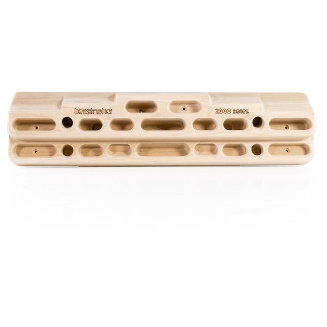 The Beastmaker 2000 is not a hangboard for beginners, it has been designed with the input of some of the best climbers the UK has to offer. The result is a hangboard which tests the limits of finger strength and will help you towards your high grade goals. The beastmaker 2000 comprises of many holds which will let you specifically target your weaknesses and get stronger, comfortably, in all of the grip types. Every hold on the board has been well thought out and radiused in order to keep the chances of tweaking to a minimum and the wooden texture wont ruin your skin whilst being grippy enought not to be frustrating. The Beastmaker 2000 comprises of: