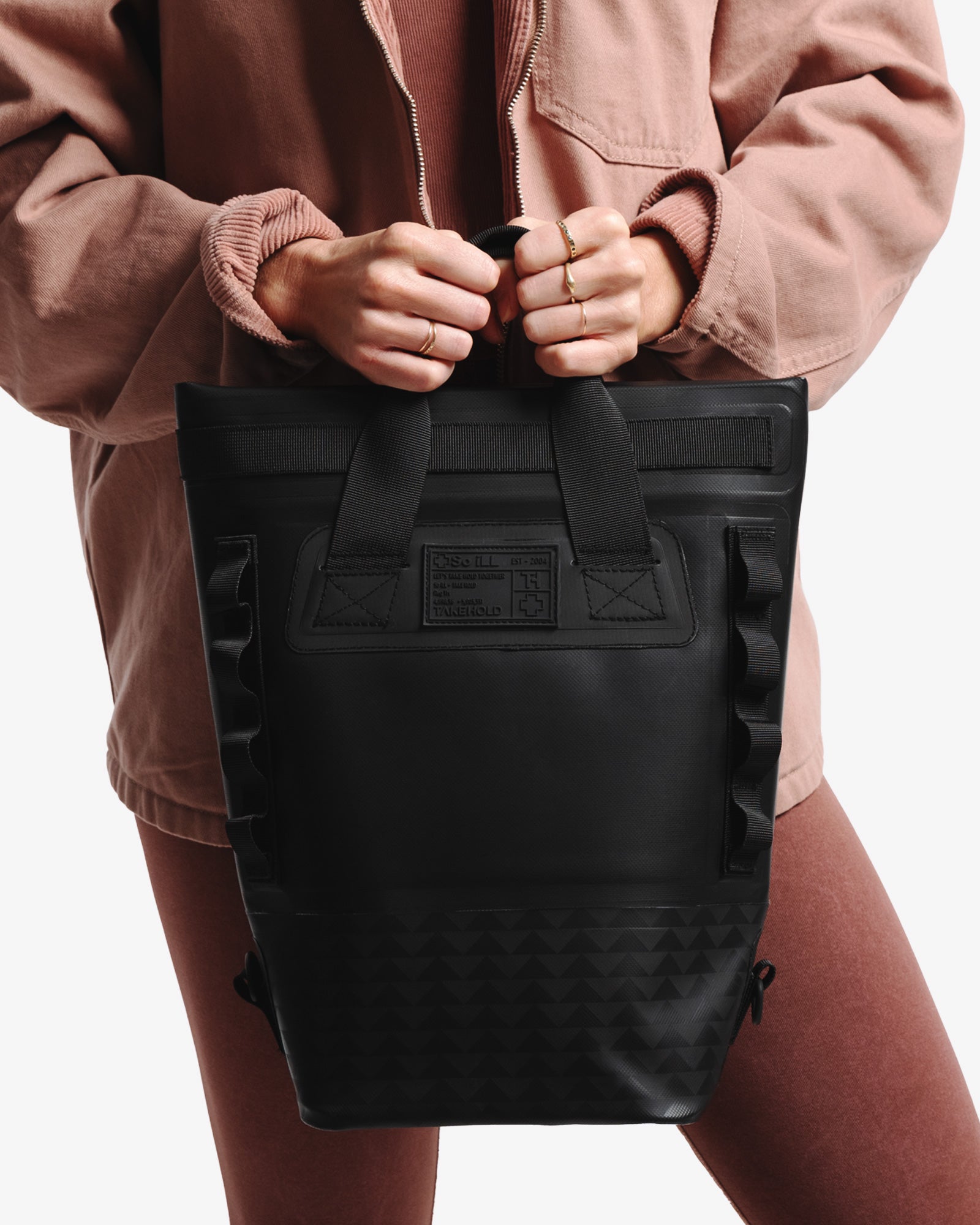 Designed for destruction, the Black Wolf Mini Dirt Bag (12L) boasts a welded dry bag construction, outfitted with TPU material for extreme durability, velcro top closure, and multiple ways to carry (backpack, one strap over the shoulder or cross body, rolldown/dry bag capability, and tote). The On The Roam signature collection, in collaboration with So iLL, includes callouts to Jason Momoa’s triangular patterned tattoo (Niho Mano) and aims to equip you for wherever you're headed next.