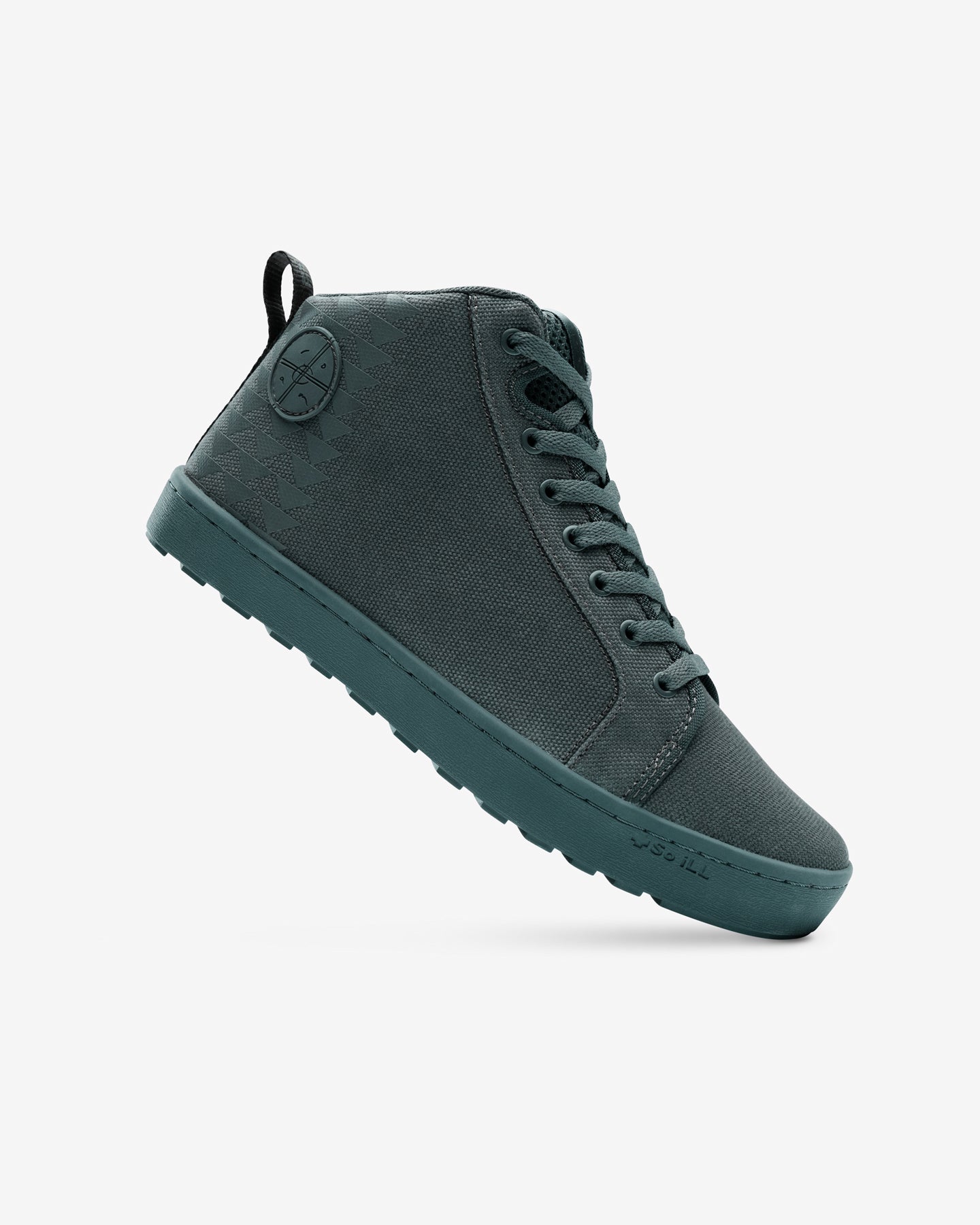 The British Racing Green Drifter includes callouts to Jason’s triangular patterned tattoo on the heel and features a 100% organic cotton upper with a waterproof membrane (for water resistant effect), a 30% BLOOM resin insole (an alternative to synthetic and petrochemical EVA foams) with a top layer of cork, and an aggressive rubber outsole with 10% recycled rubber.