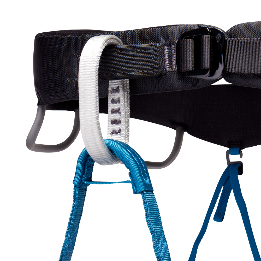 For all-around climbers who know that time spent fiddling with leg loops and adjusting a pinching waistbelt is time wasted, the Black Diamond Momentum delivers a time-saving design for all styles of climbing. A pre-threaded Speed Adjust waistbelt buckle saves time and eliminates error when tying in, while Dual Core Construction™ puts an emphasis on comfort, even when you're posted up at a hanging belay. TrakFIT leg-loops easily adjust for cool fall days at the crag or blazing summer days on long multi-pitches, and four pressure-molded gear loops and a haul loop make this our most popular all-rounder.