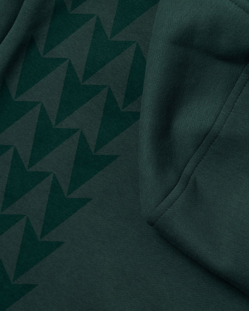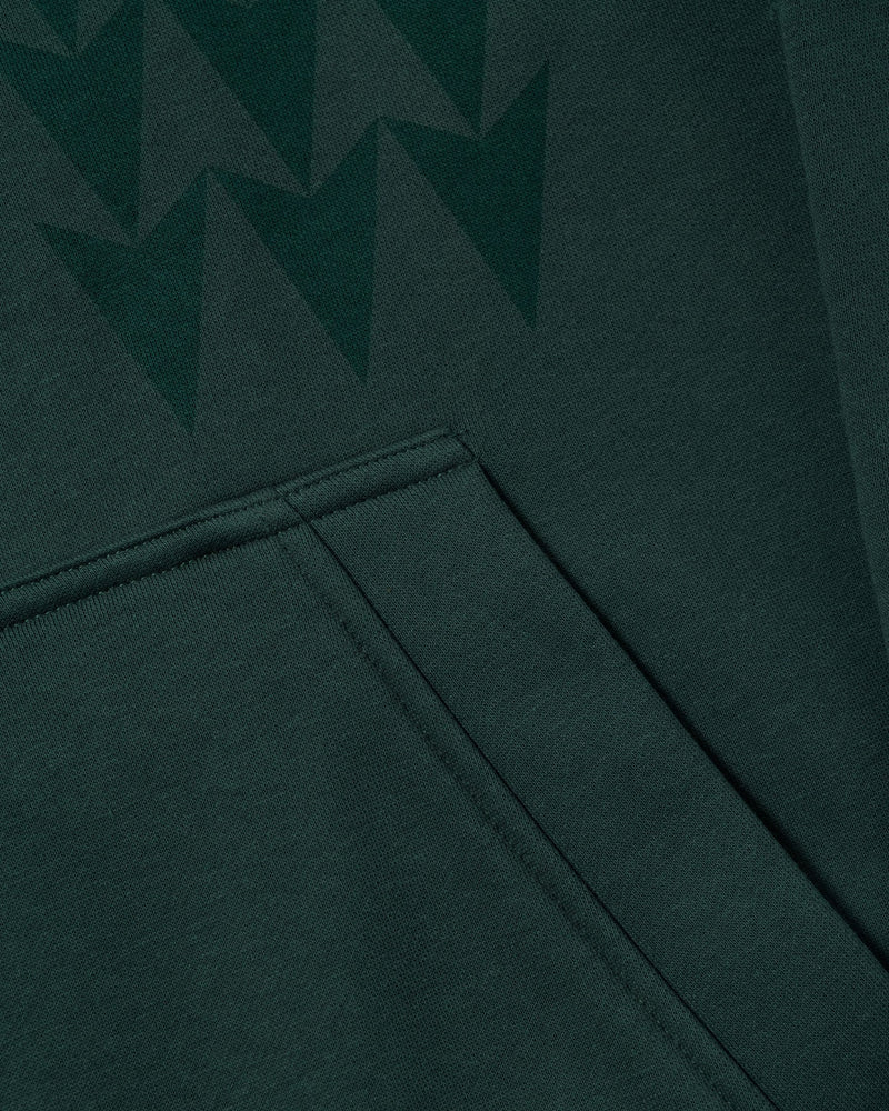 - “Lovey Green” a term of endearment between Jason and his daughter, is the inspiration for our newest hoodie colorway. The British Racing Green Hoodie is a relaxed fit construction made with 60% organic cotton / 40% recycled polyester blend fabric. The soft, water-based ink print includes the Ihe (spear) pattern