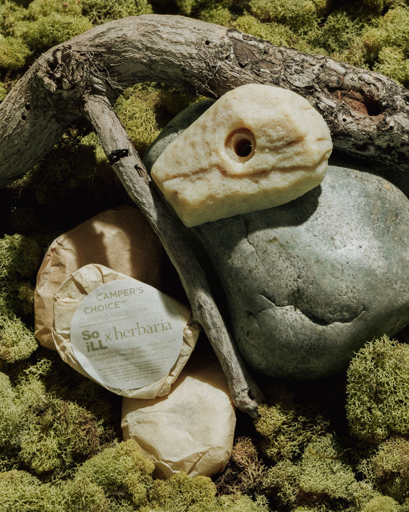 So iLL have collaborated with their friends and neighbors at Herbaria Soap to bring you a climbing hold shaped insect repellent soap - Camper’s Choice™. Developed with 8 essential oils known to mask CO² (which is what attracts pests), this soap also provides gentle exfoliation while moisturizing and soothing your skin. Lather up before your hike or anytime you’re headed outdoors and enjoy.