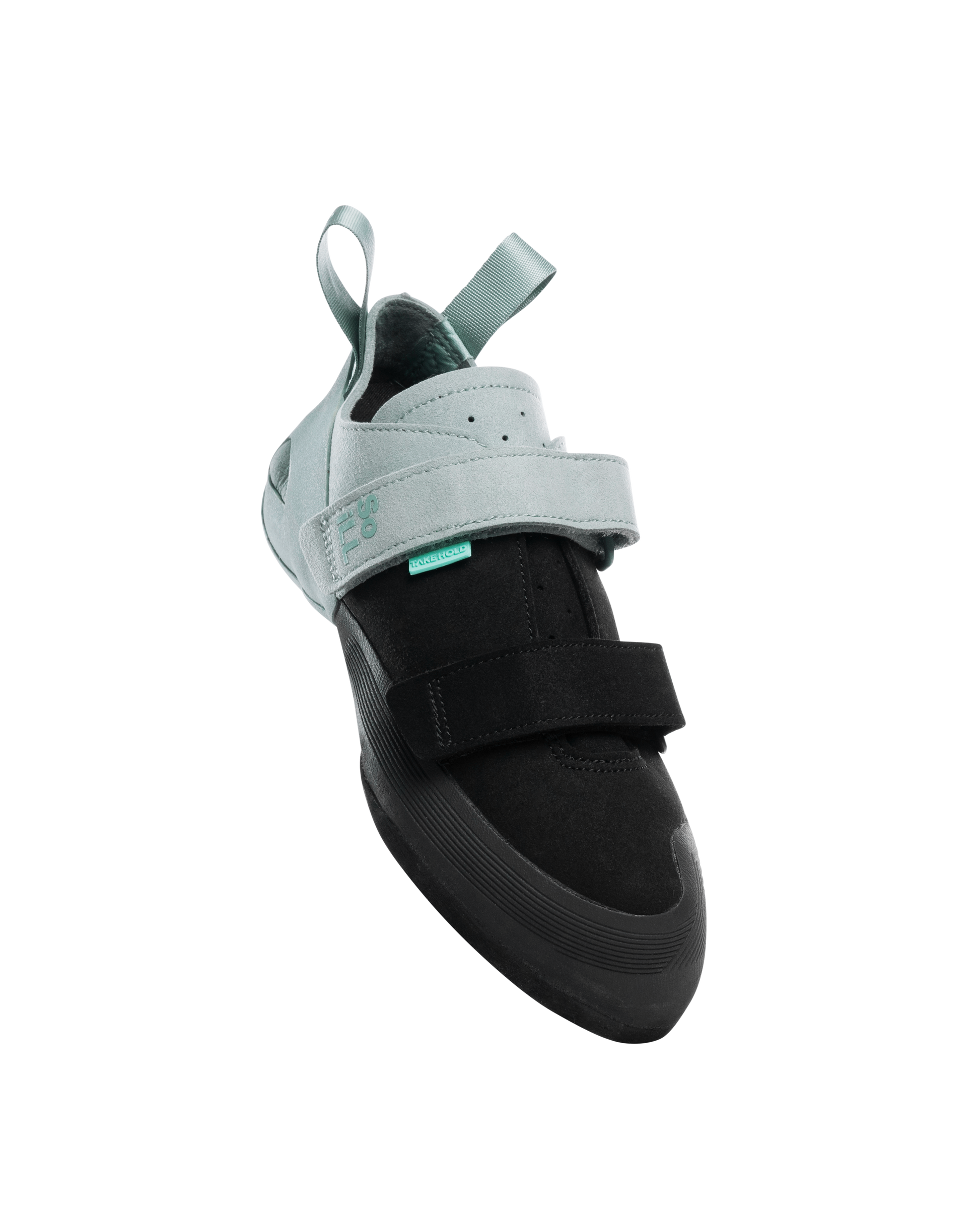 Built on an all-new, hand-shaped, downturned last with the expertise of Jae Jung and consultation with Fred Nicole, STREET LV is the low volume version of the STREET model. This low volume version creates a more narrow width and fit. The new STREET LV features a durable and comfortable, unlined, vegan microsuede upper with a performance dual-strap closure and d-ring integration for an ultra precise fit. The split-outsole is outfitted with high performance Vibram XS GRIP rubber for edging and durability. The medium asymmetry and downturn, along with a semi-soft rigidity, allows for security on small edges for intermediate climbing. Downturned shoes help to maximize performance for more aggressive terrain such as overhanging walls or movement that requires meticulous footwork. STREET LV is a semi-soft low volume shoe which is great for indoor/outdoor climbing.
